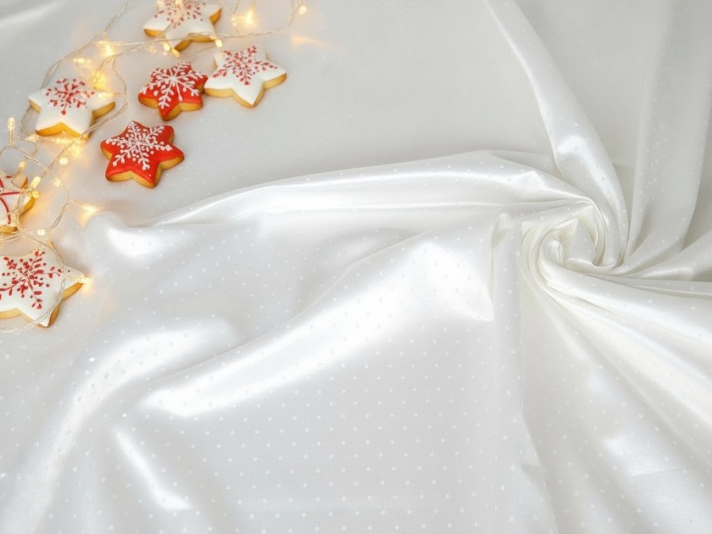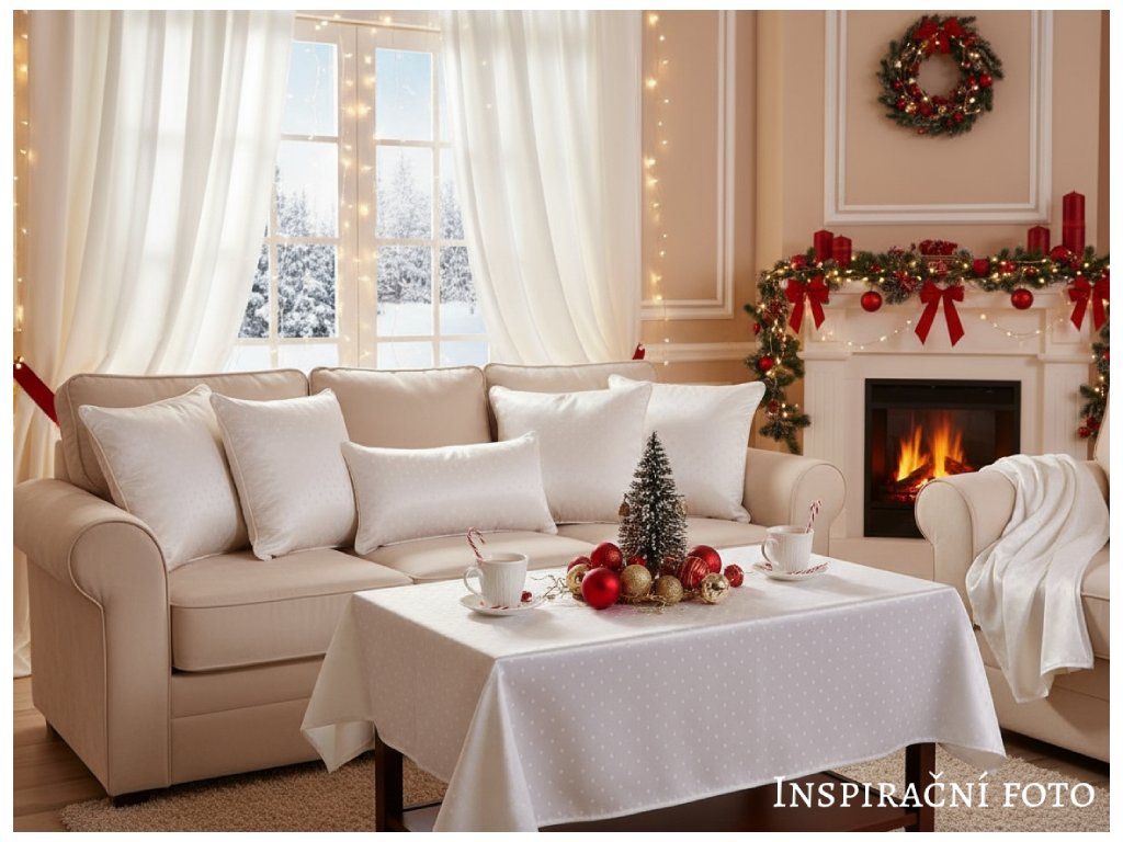 Kvalitní látka ve sněhově bílé a vínové barvě. Metráž má skvělou teflonovou úpravu, takže se do látky nevsákne žádná tekutina, ta po ní jen zteče a vy se tak vyhnete mokrým flekům.
