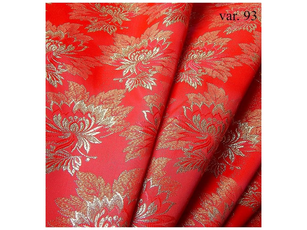 Krojový brokát - jedinečný textilní materiál s vytkanými květinovými vzory. Velká škála barevných variací, tyto v zemitých tónech. Krojový brokát vyrábíme pro jednotlivé oblasti na výrobu národních krojů, krojových sukní, fěrtochů a dalších krojových součástí.