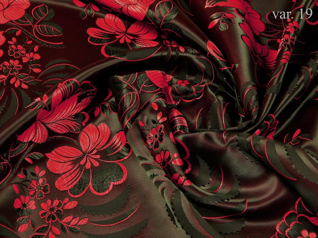 Krojový brokát - jedinečný textilní materiál s vytkaným květinovým vzorem. Velká škála barevných variací, některé doplněné vetkaným rexorem. Krojový brokát vyrábíme pro jednotlivé oblasti na výrobu národních krojů, krojových sukní, fěrtochů a dalších krojových součástí.