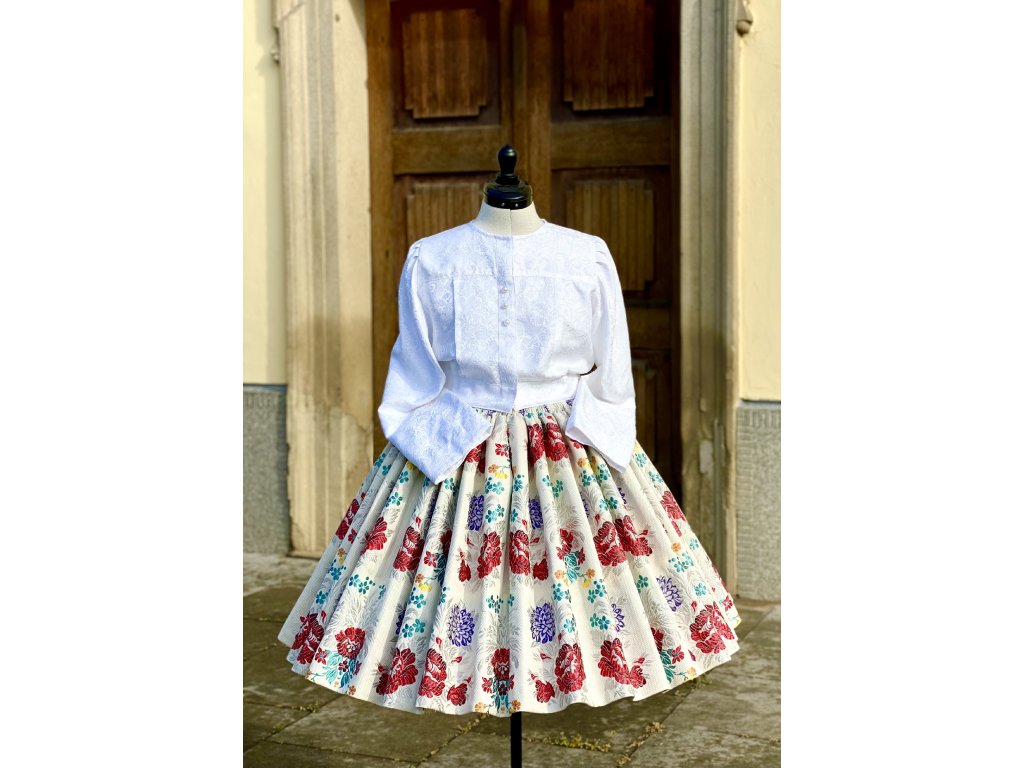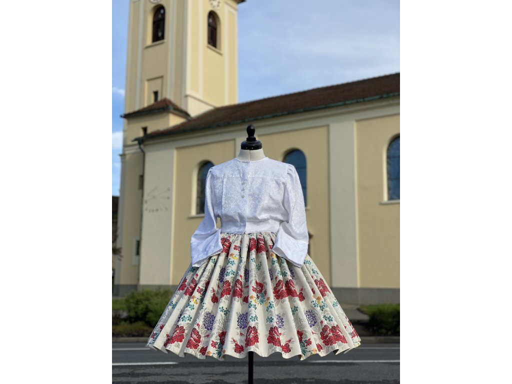 Veľmi kvalitná látka, vzhľadom aj kvalitou pripomínajúca starodávne "poklady" z ktorej sa šijú jednotlivé krojové časti.