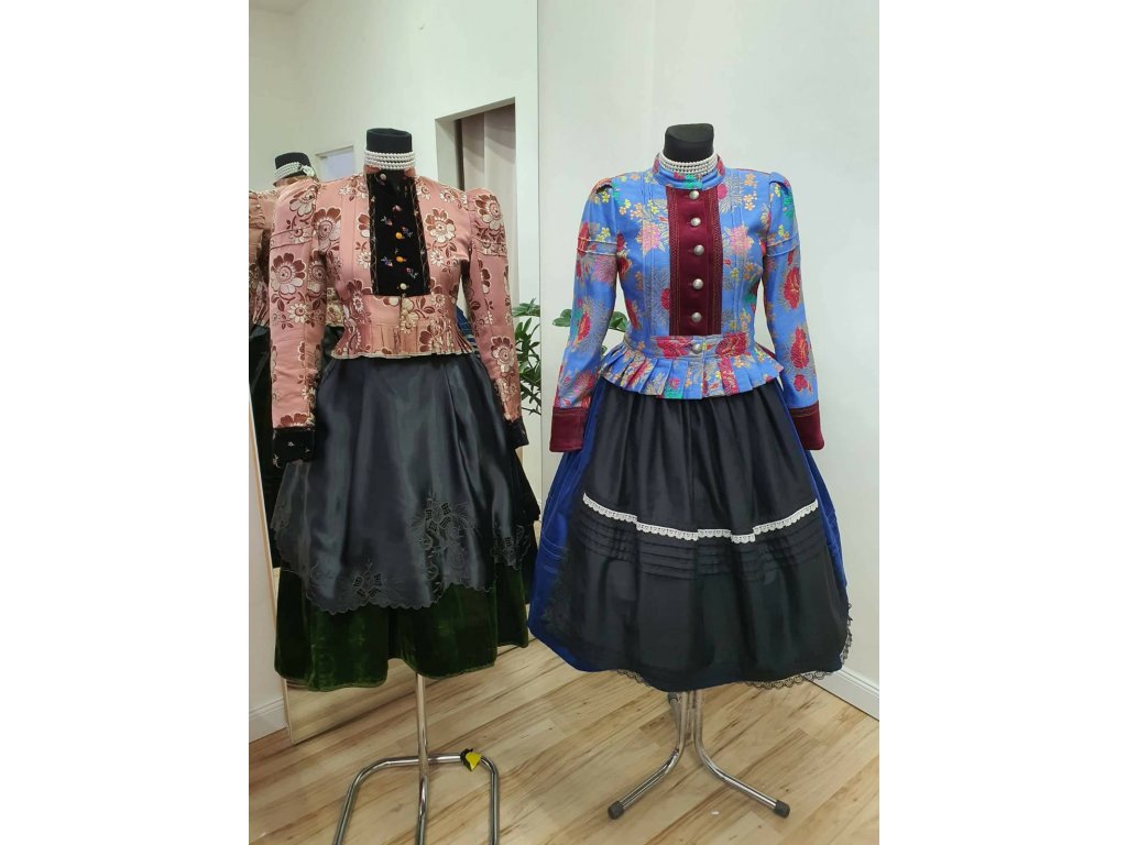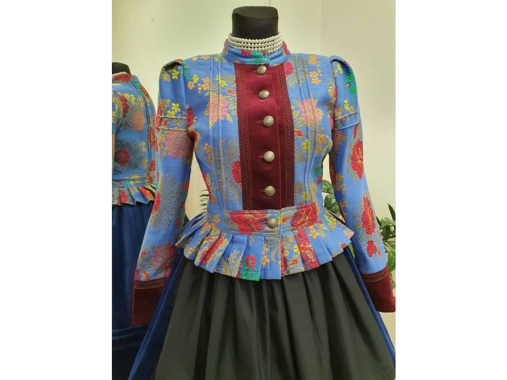 Krojový brokát - jedinečný textilní materiál s vytkaným květinovým vzorem. Velká škála barevných variací, některé doplněné vetkaným rexorem. Krojový brokát vyrábíme pro jednotlivé oblasti na výrobu národních krojů, krojových sukní, fěrtochů a dalších krojových součástí.