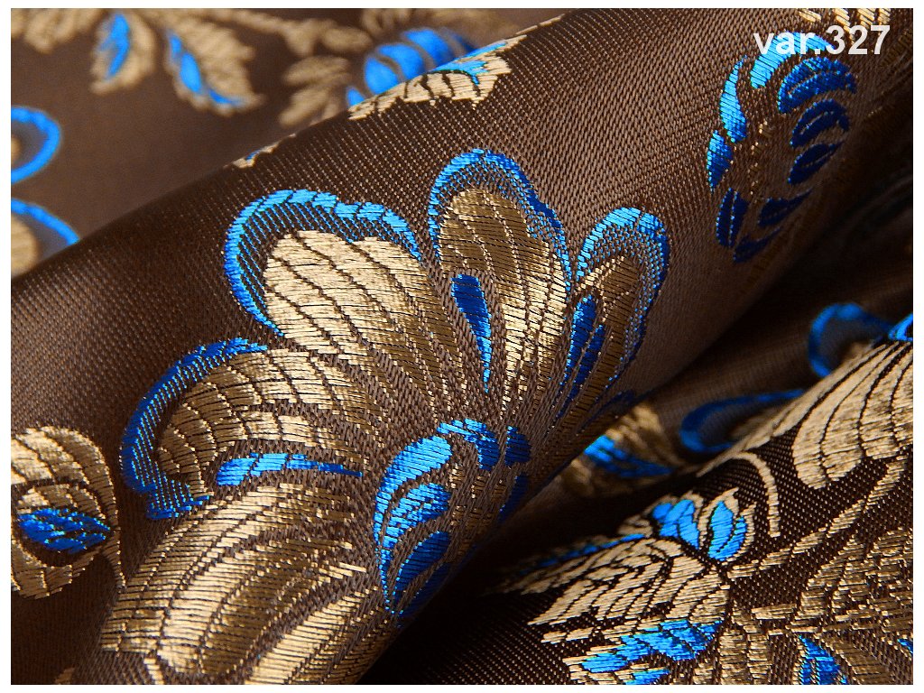 Krojový brokát - jedinečný textilní materiál s vytkanými květinovými vzory. Velká škála barevných variací, některé doplněné vetkaným rexorem. Krojový brokát vyrábíme pro jednotlivé oblasti na výrobu národních krojů, krojových sukní, fěrtochů a dalších krojových součástí.