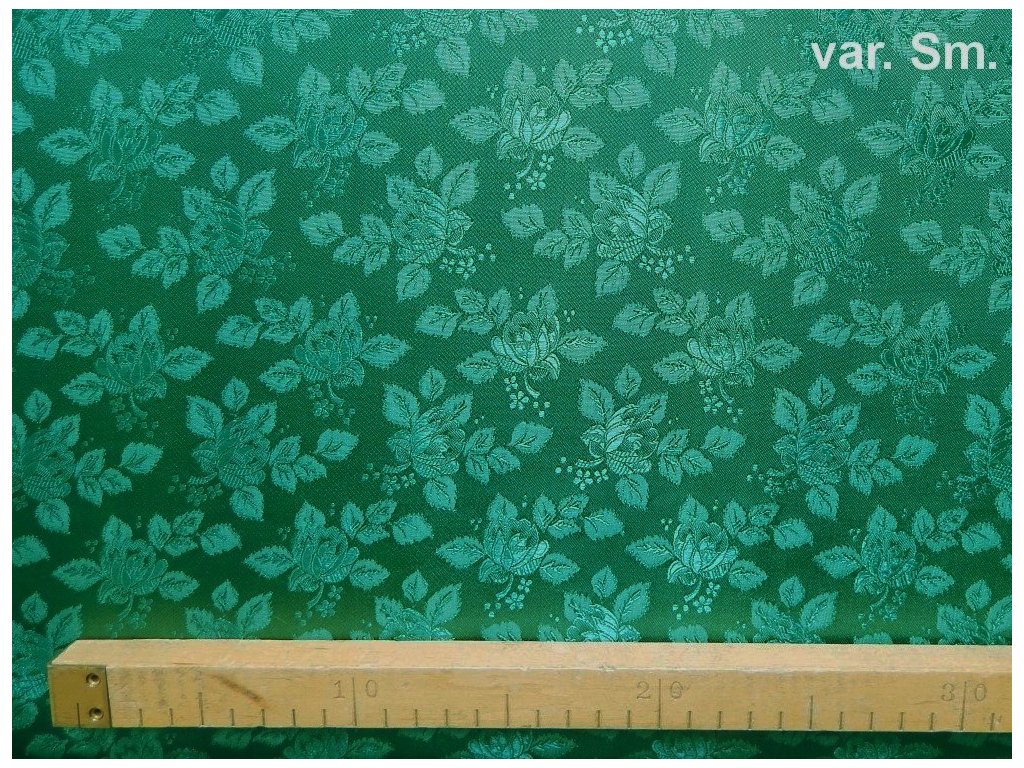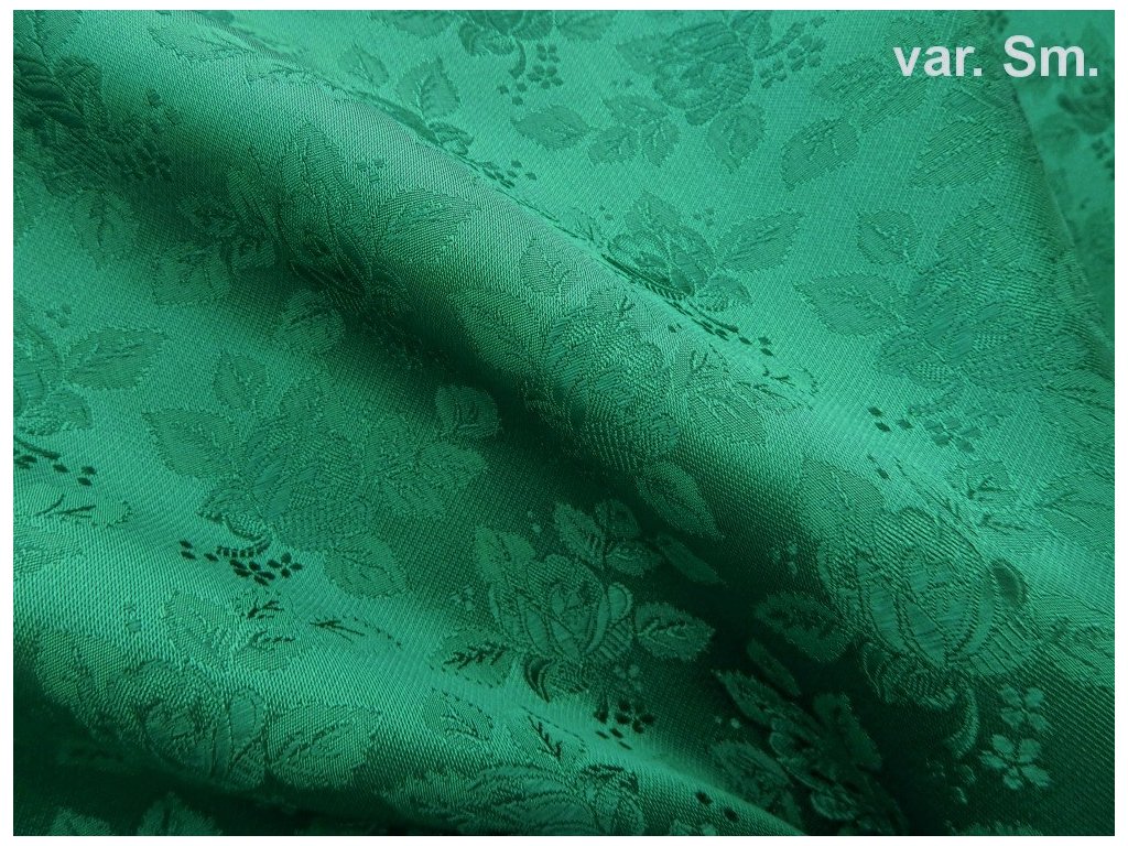 Krojový brokát - jedinečný textilní materiál s vytkaným květinovým vzorem. Velká škála barevných variací, některé doplněné vetkaným rexorem. Krojový brokát vyrábíme pro jednotlivé oblasti na výrobu národních krojů, krojových sukní, fěrtochů a dalších krojových součástí.