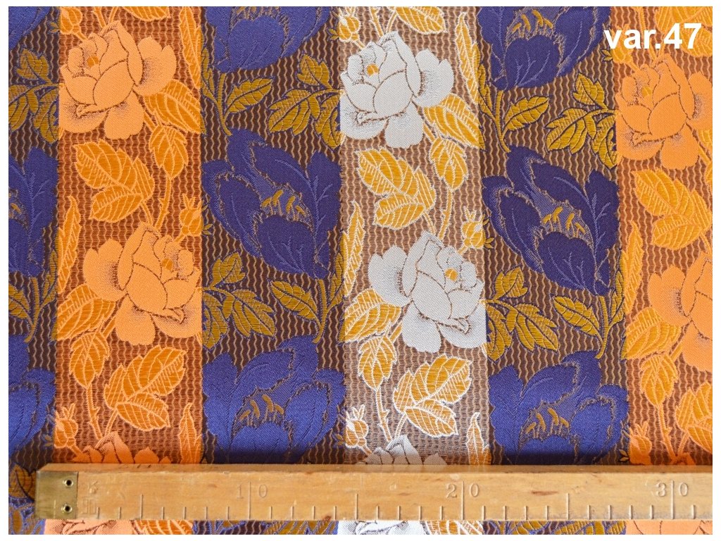 Krojový brokát - jedinečný textilní materiál s vytkaným květinovým vzorem. Velká škála barevných variací, některé doplněné vetkaným rexorem. Krojový brokát vyrábíme pro jednotlivé oblasti na výrobu národních krojů, krojových sukní, fěrtochů a dalších krojových součástí.