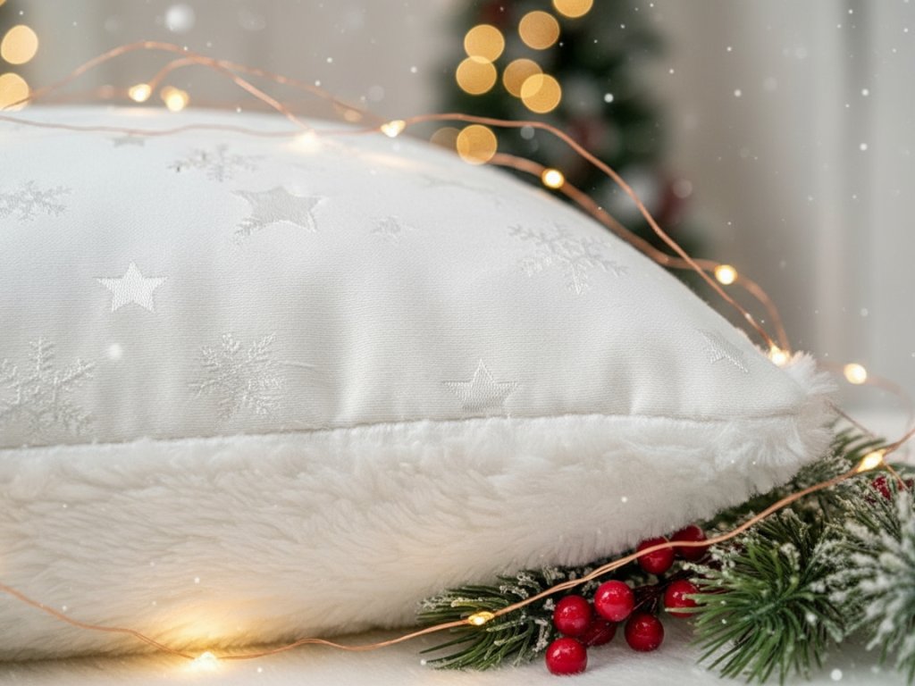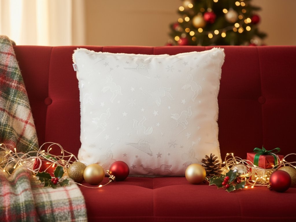 Vánoční polštář se vzorem andílků a měkkoučkými plyšovými zády.