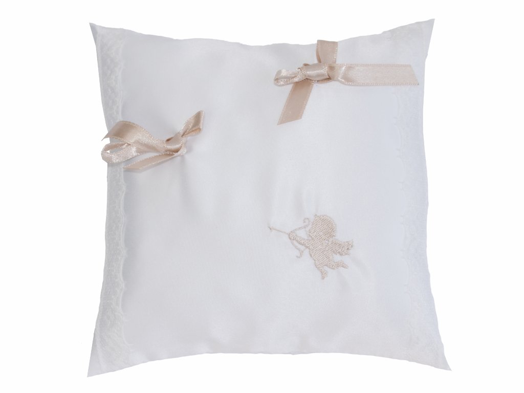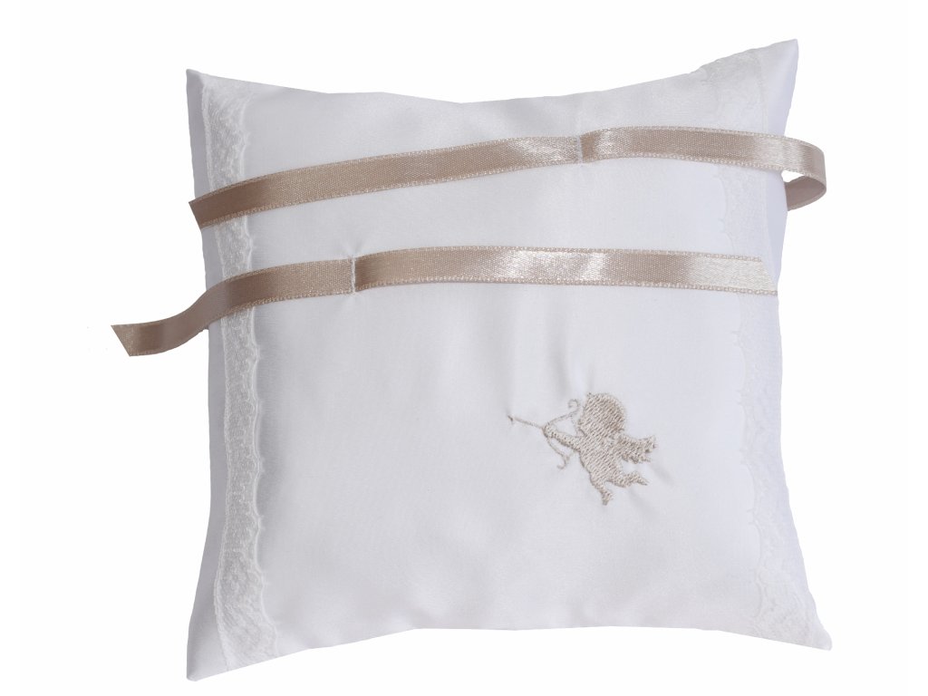 Polštářek pod snubní prstýnky s výšivkou AMOREK bílá/béžová