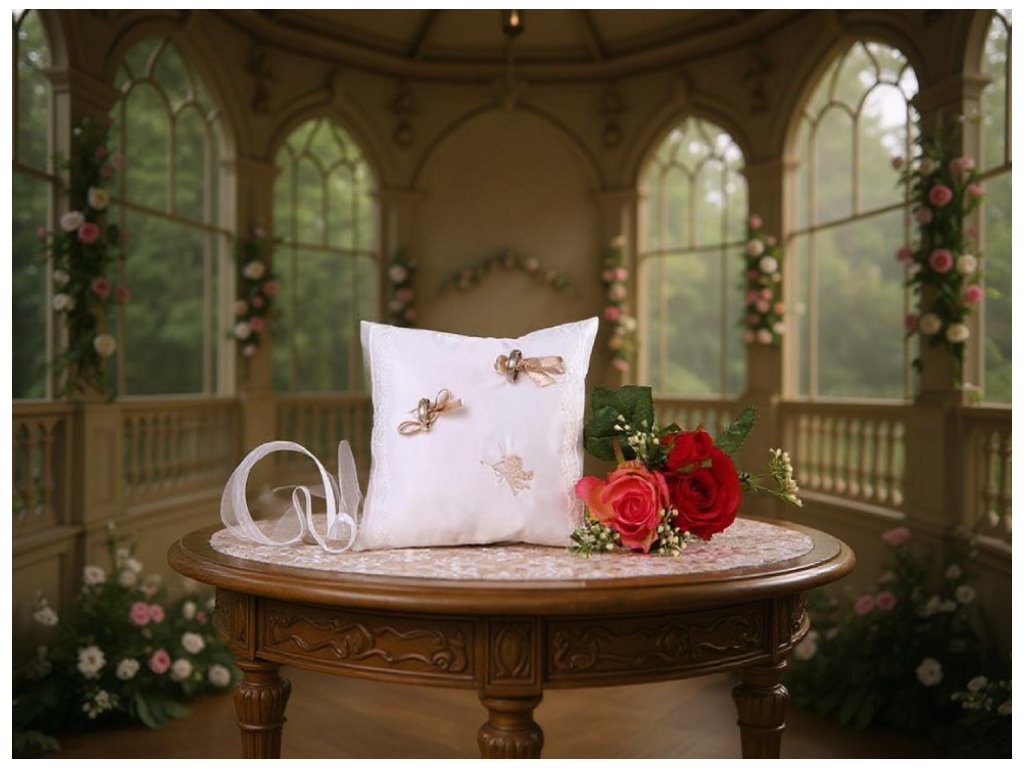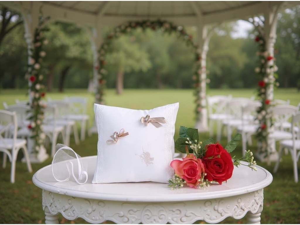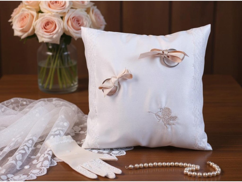 Polštářek pod snubní prstýnky je malý, ale důležitý detail vaší svatby. Své snubní prsteny uvážete pomocí stužek, nemusíte se tak bát jejich upadnutí a následného hledání u oltáře po čtyřech.
