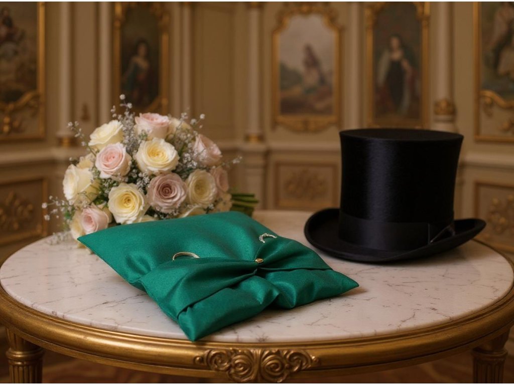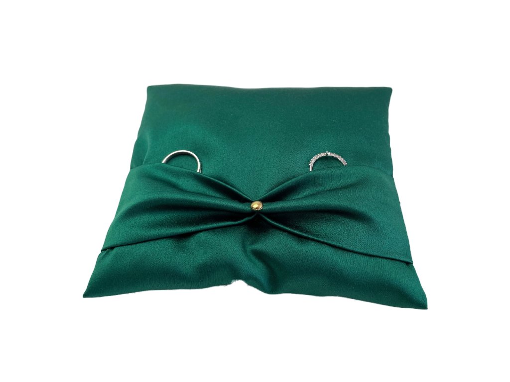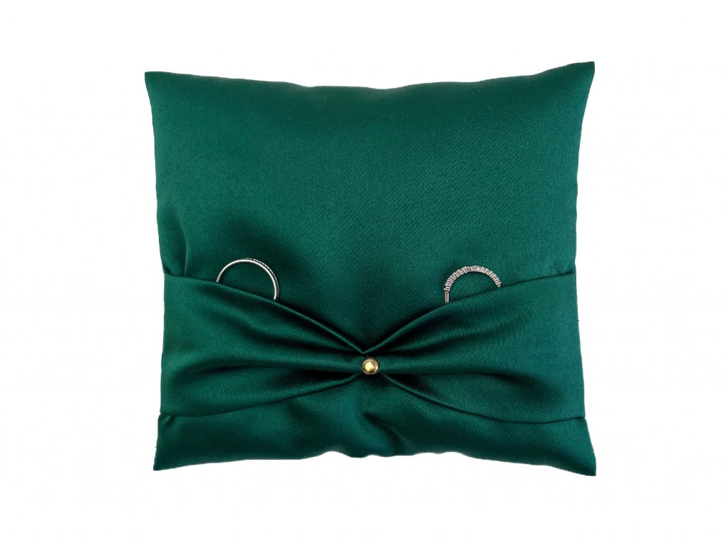 Polštářek pod snubní prstýnky s pecičkou zelená smaragdová