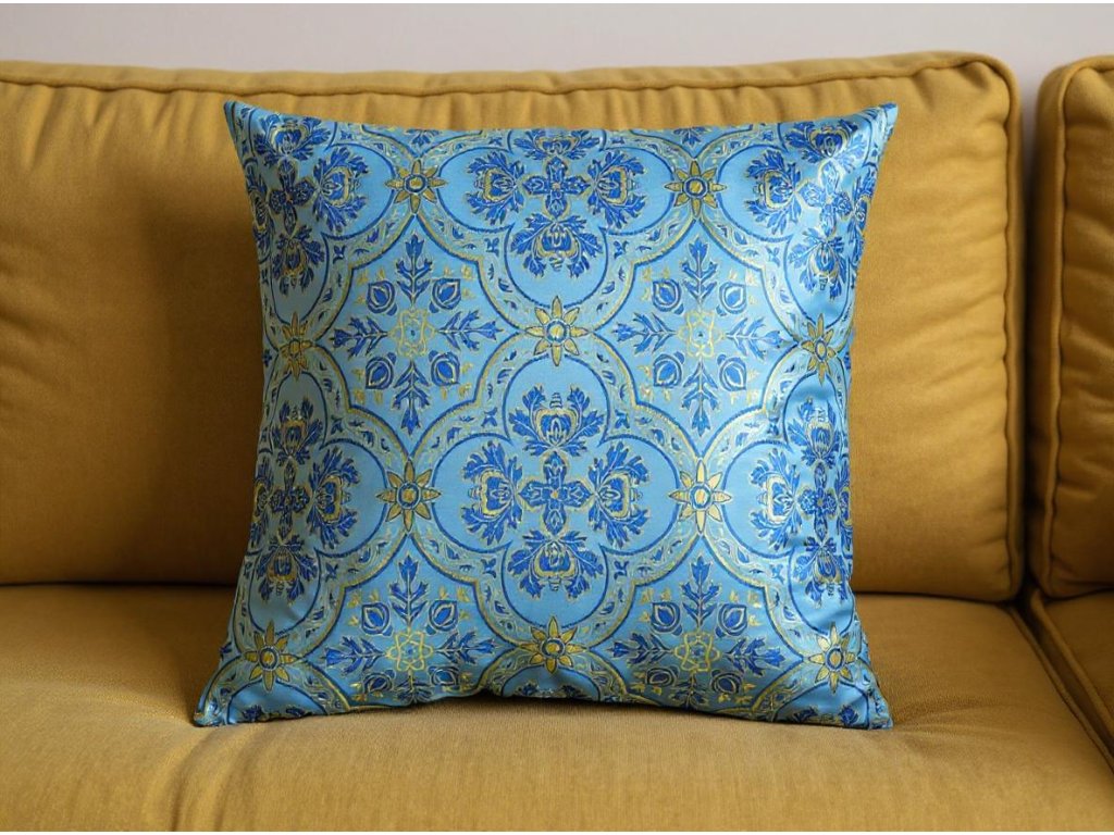 Povlak na polštář brokát 50x50 ČTYŘLÍSTEK modrá