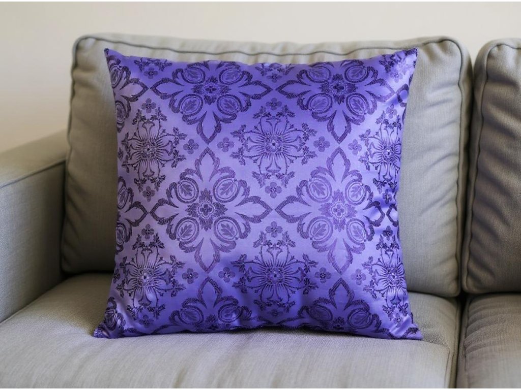 Povlak na polštář brokát 50x50 KŘÍŽ FLORÁL fialová