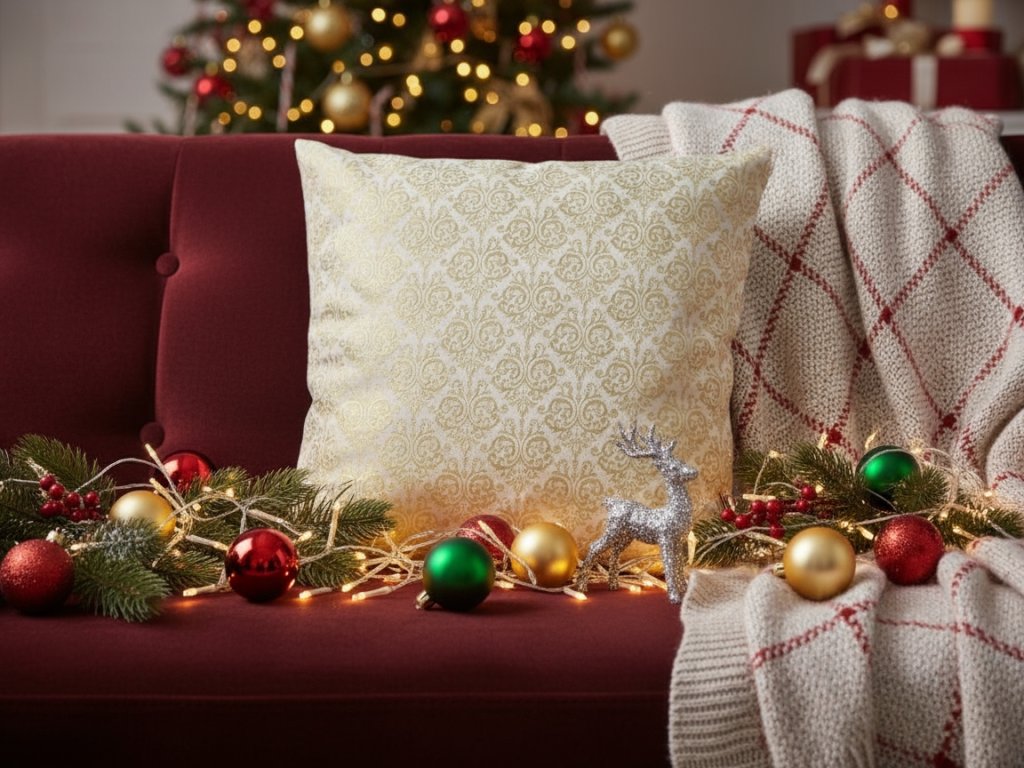 Povlak na polštář brokát 50x50 ORNAMENT okrově zlatá