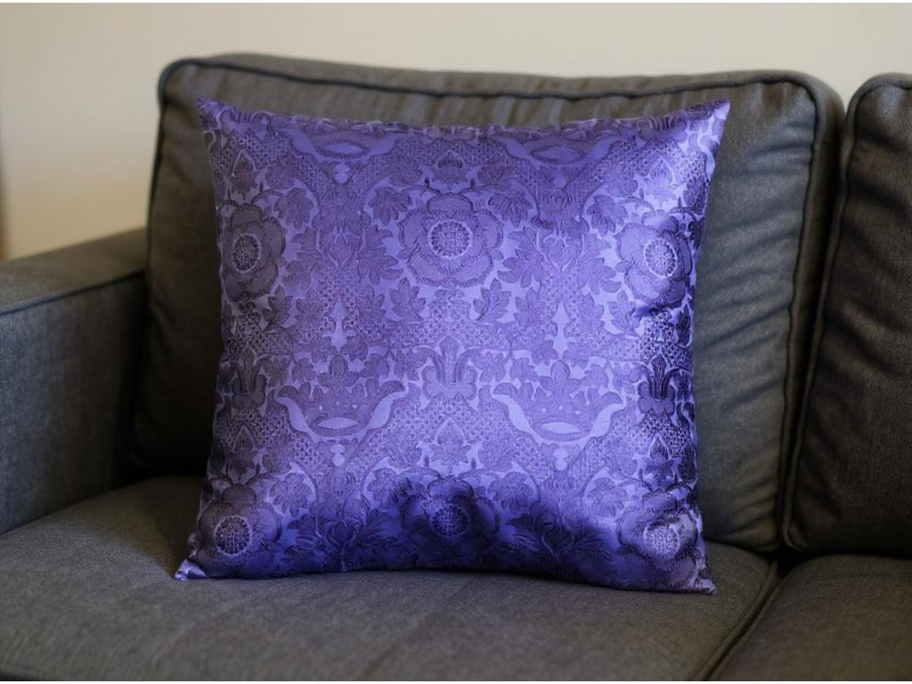 Povlak na polštář brokát 50x50 PĚTILISTÁ RŮŽE S KORUNKOU fialová