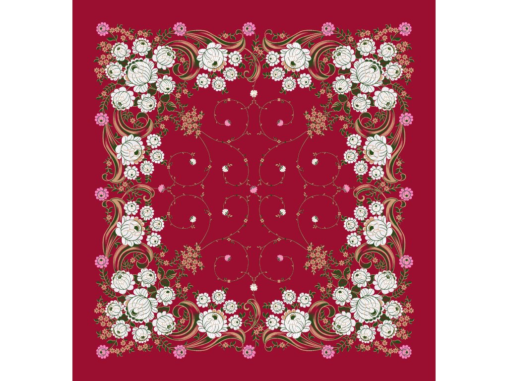 Předobjednávka Šátek Ondrit VSh 76x76 FLORI SE ŠLAHOUNY třešňová