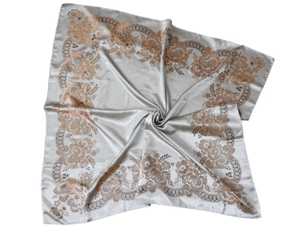 Tradiční krása růží proplétajících se s jemným krajkovým motivem dává tomuto krojovému šátku jedinečný půvab. Precizně tkaný vzor spojuje něhu květin s elegancí krajky, čímž vytváří nadčasový doplněk, který ozdobí každý kroj i slavnostní oděv.