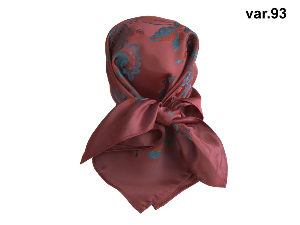 Šátek Ondrin VSh 76x76 RŮŽE A TULIPÁN vínová