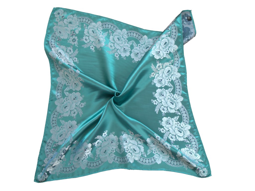 Šátek Ondrin VSh 76x76 RŮŽE S KRAJKOU tyrkysová
