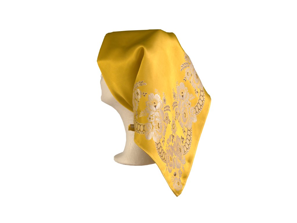 Šátek Ondrin VSh 76x76 RŮŽE S KRAJKOU žlutá
