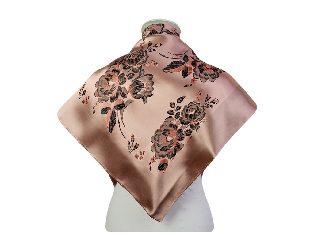 Šátek Ondrin VSh 76x76 RŮŽE A TULIPÁN lososová
