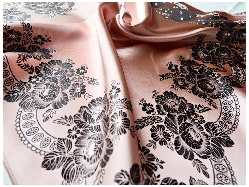 Šátek Ondrin VSh 77x77 RŮŽE S KRAJKOU lososová
