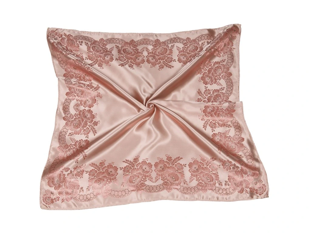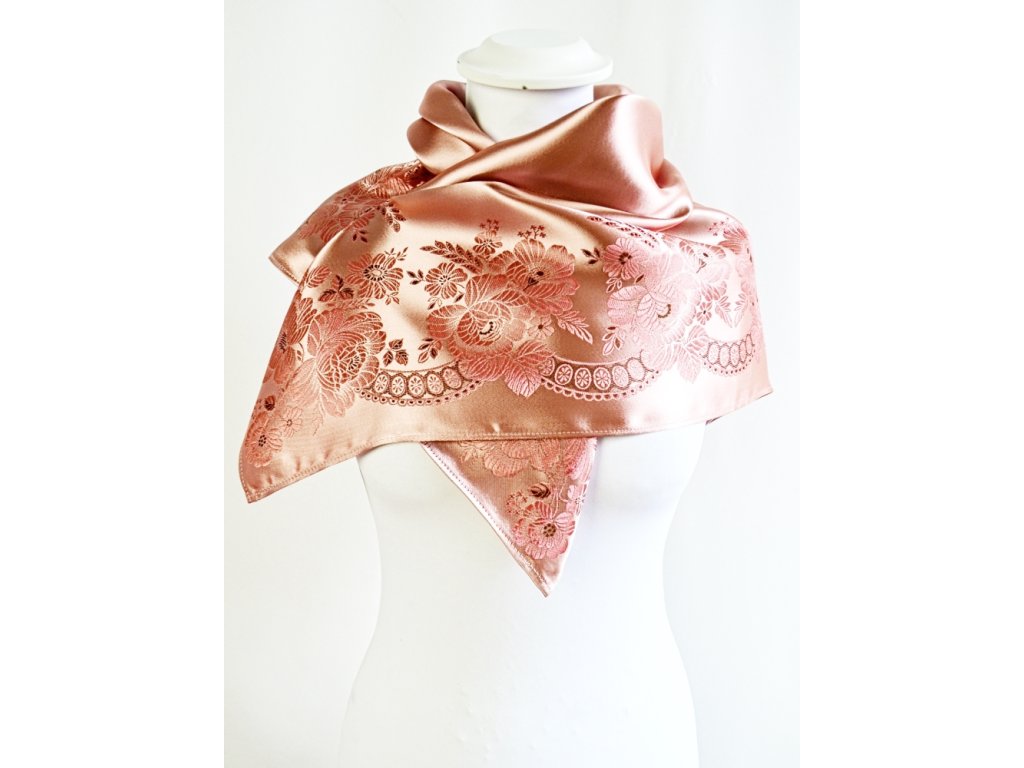 Šátek Ondrin VSh 77x77 RŮŽE S KRAJKOU lososová