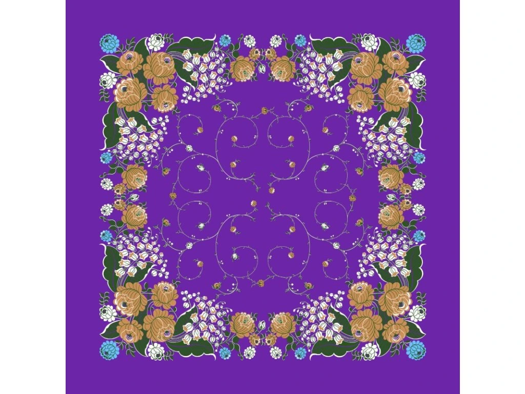 Šátek Ondrit VSh 76x76 KONVALINKY SE ŠLAHOUNY fialová