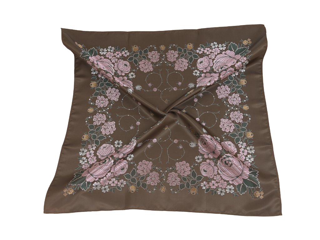 Šátek Ondrit VSh 76x76 HORTENZIE SE ŠLAHOUNY hnědá