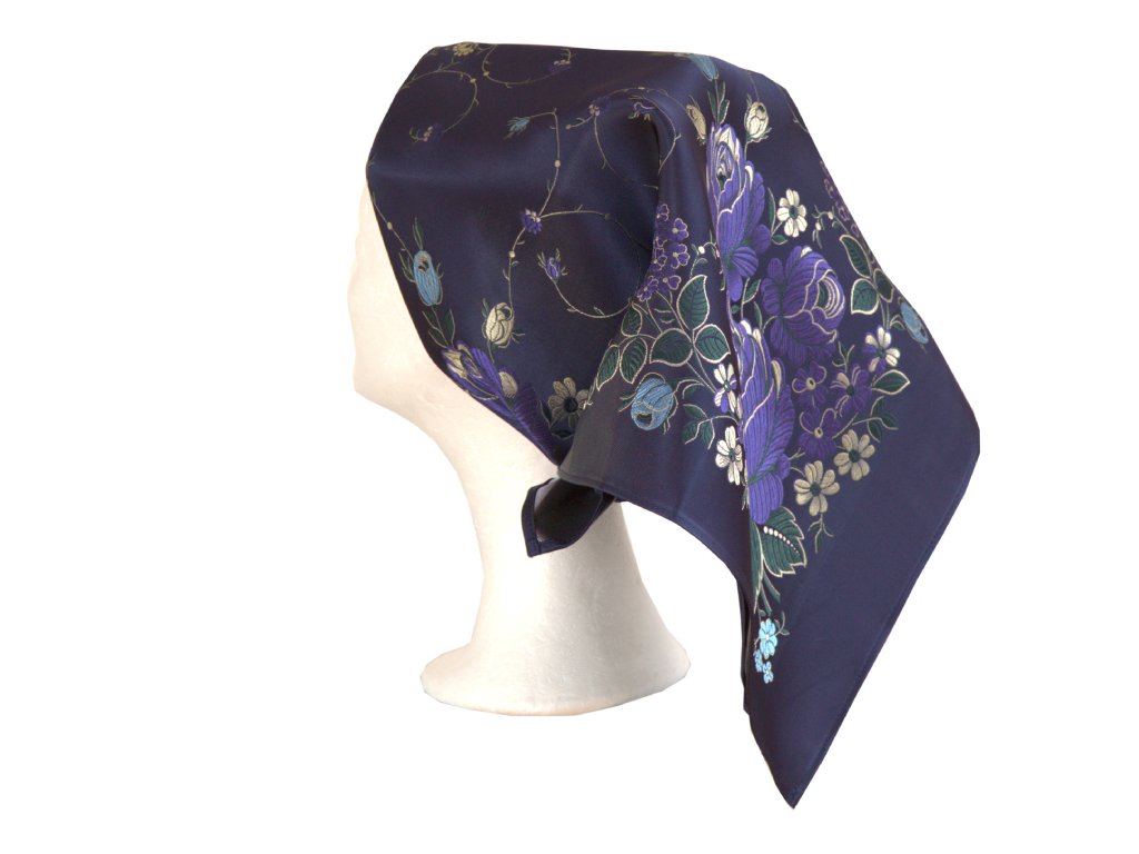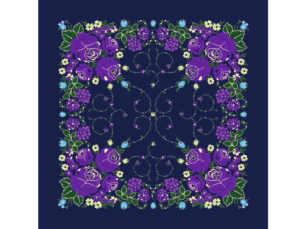 Šátek Ondrit VSh 76x76 HORTENZIE SE ŠLAHOUNY modrá