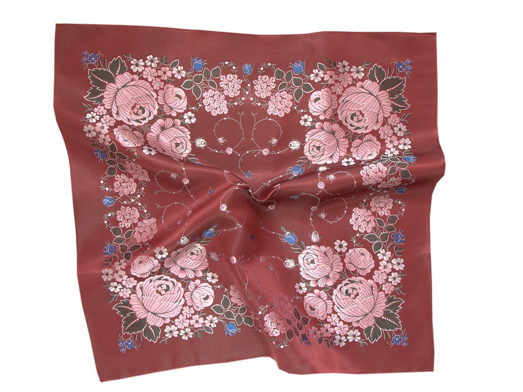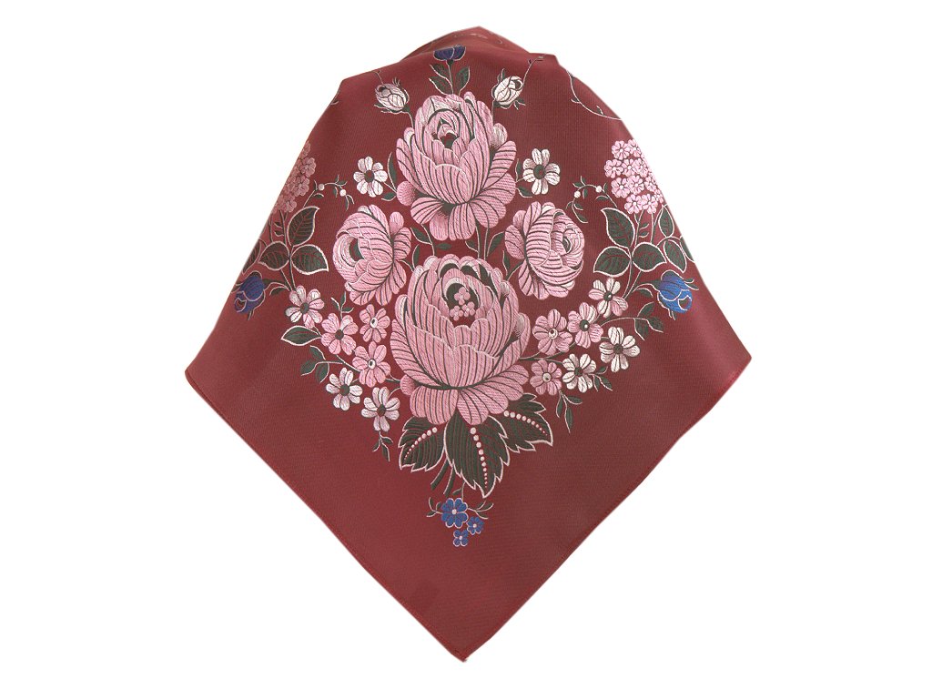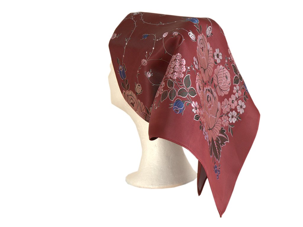 Šátek Ondrit VSh 76x76 HORTENZIE SE ŠLAHOUNY vínová