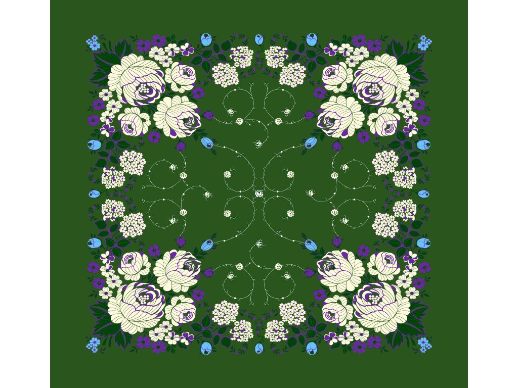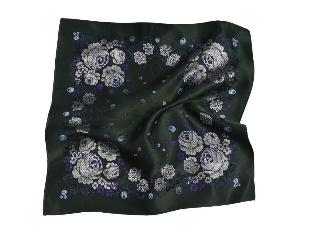Šátek Ondrit VSh 76x76 HORTENZIE SE ŠLAHOUNY zelená