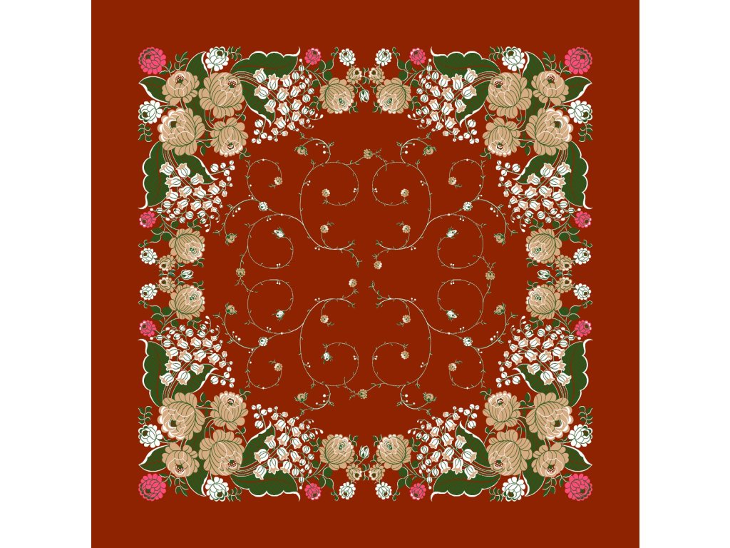 Šátek Ondrit VSh 76x76 KONVALINKY SE ŠLAHOUNY rezavá