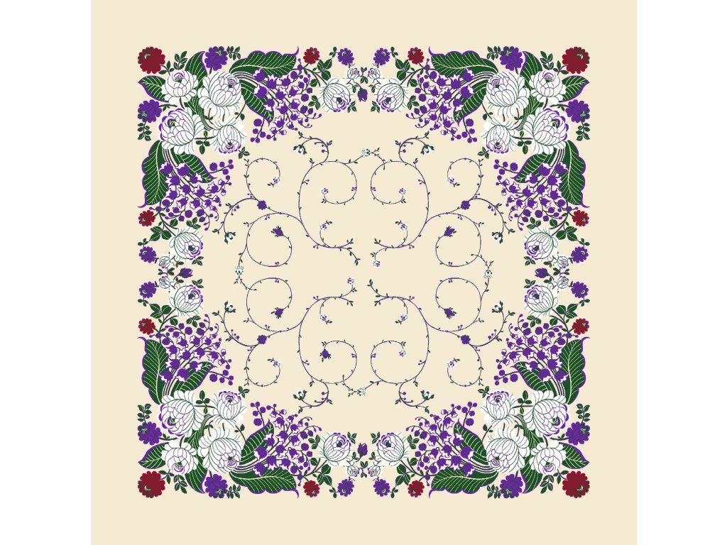 Šátek Ondrit VSh 76x76 KONVALINKY SE ŠLAHOUNY smetanová
