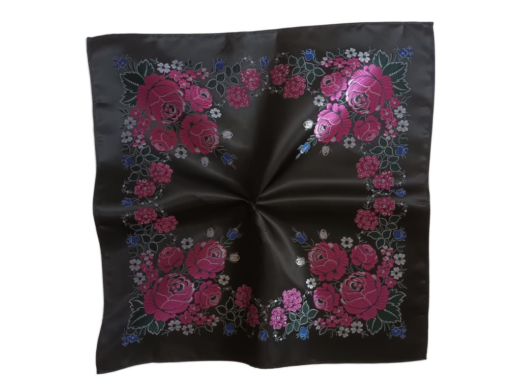 Šátek Ondrit VSh 76x76 KVĚTY BEZ ŠLAHOUNŮ černá