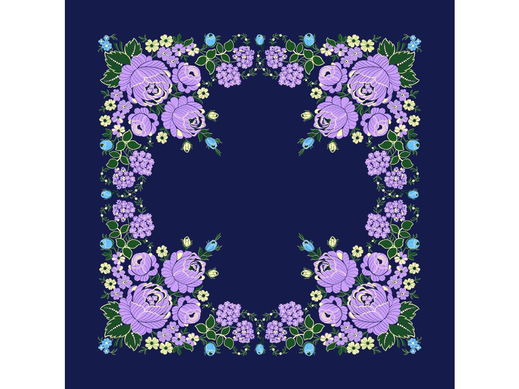Šátek Ondrit VSh 76x76 KVĚTY BEZ ŠLAHOUNŮ modrá