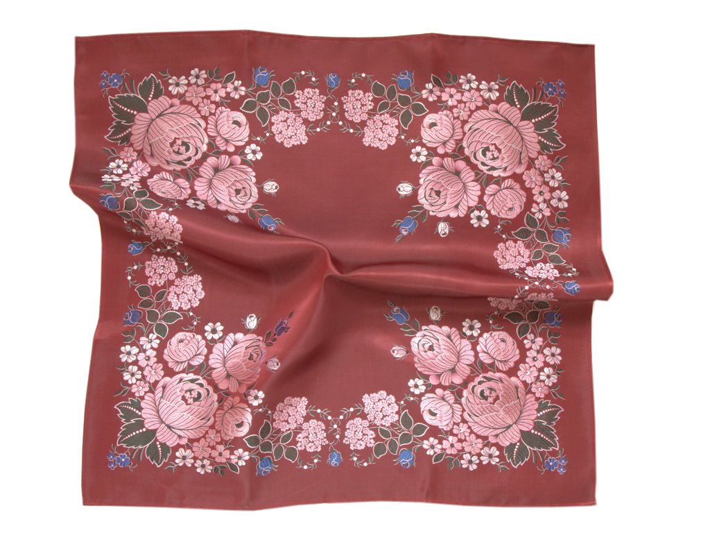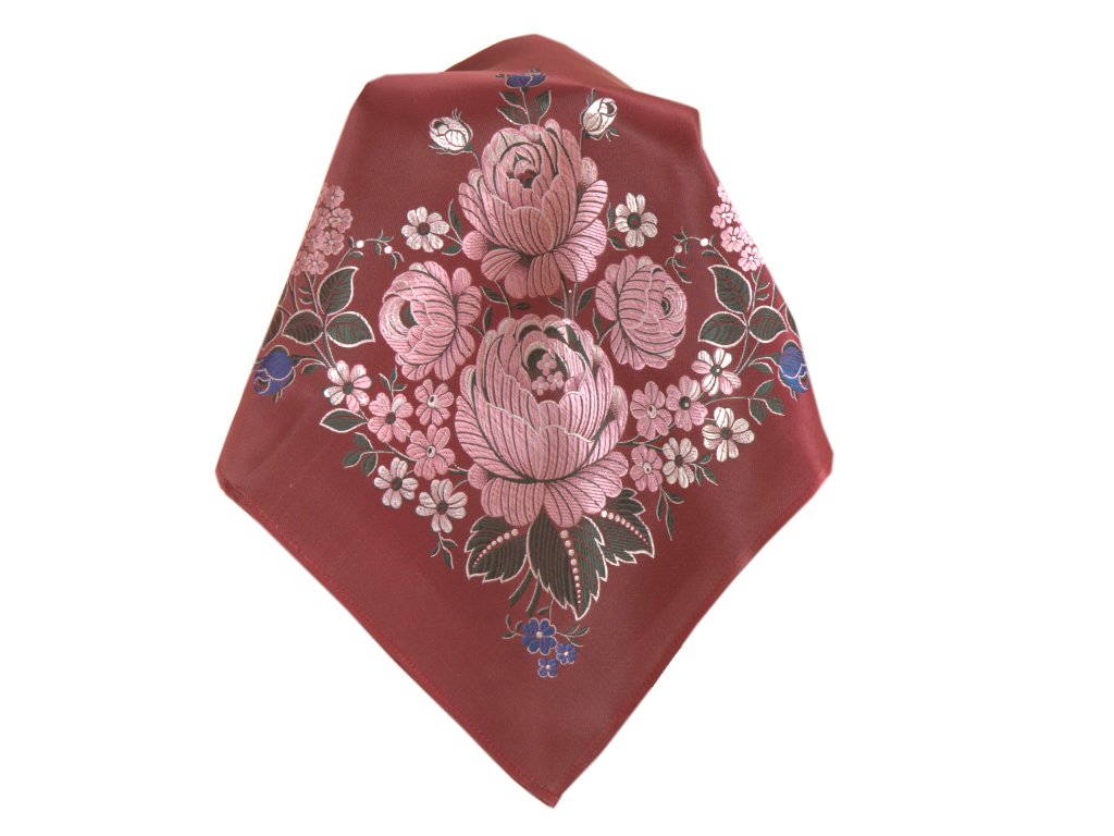 Šátek Ondrit VSh 76x76 KVĚTY BEZ ŠLAHOUNŮ vínová