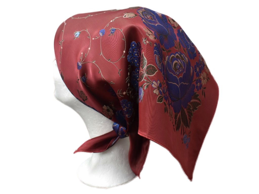 Šátek Ondrit VSh 78x78 HORTENZIE SE ŠLAHOUNY vínová
