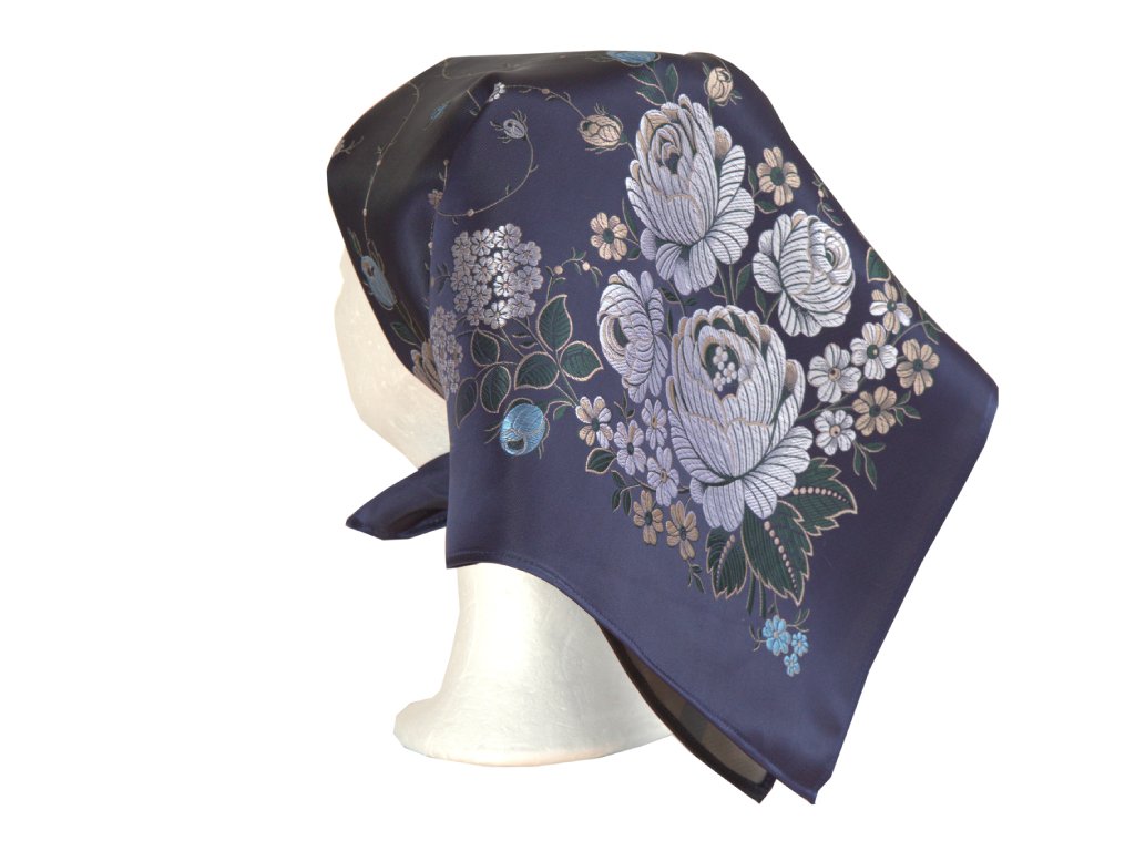 Šátek Ondrit VSh 80x80 HORTENZIE SE ŠLAHOUNY modrá