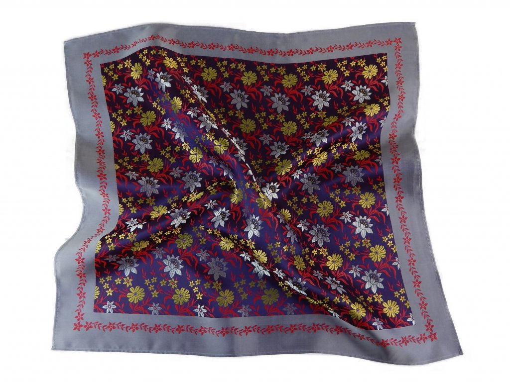 Šátek Ondrit VSh 90x90 KVÍTKY modrá