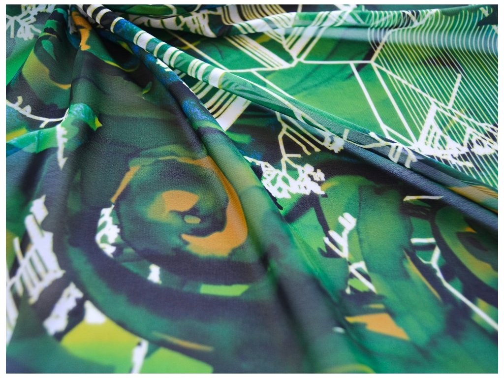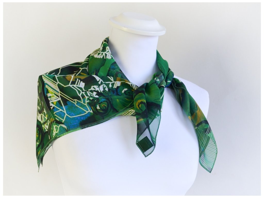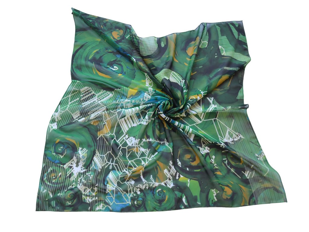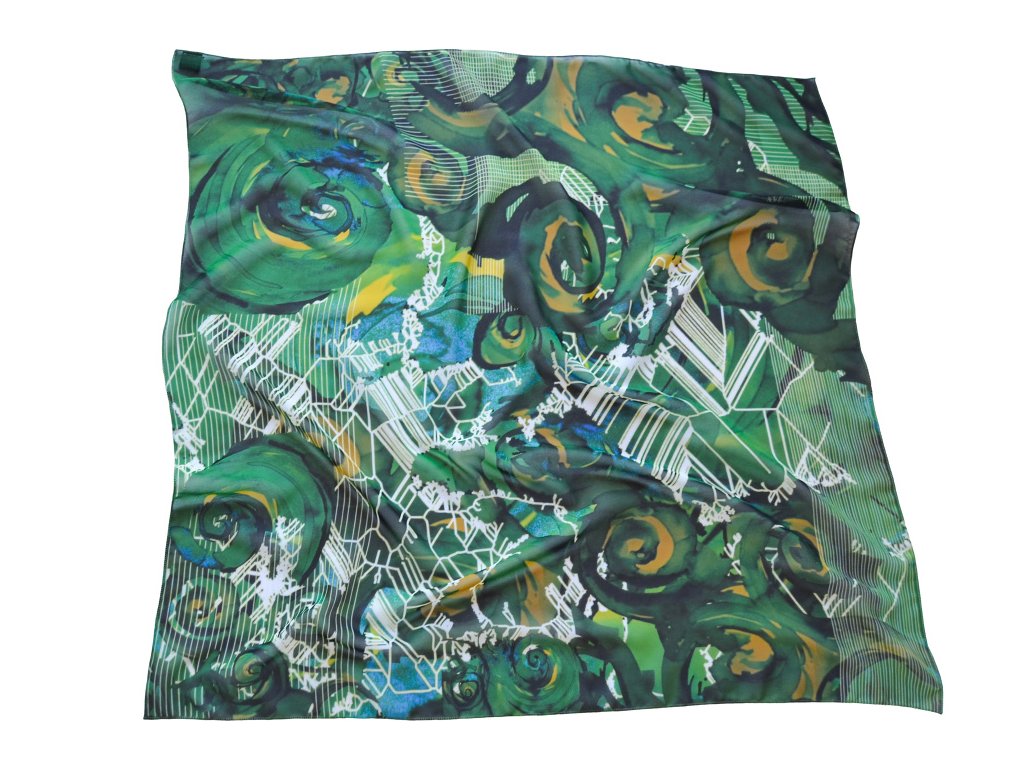 Šátek PESh 70x70 tisk Aquarelle spiral zelená
