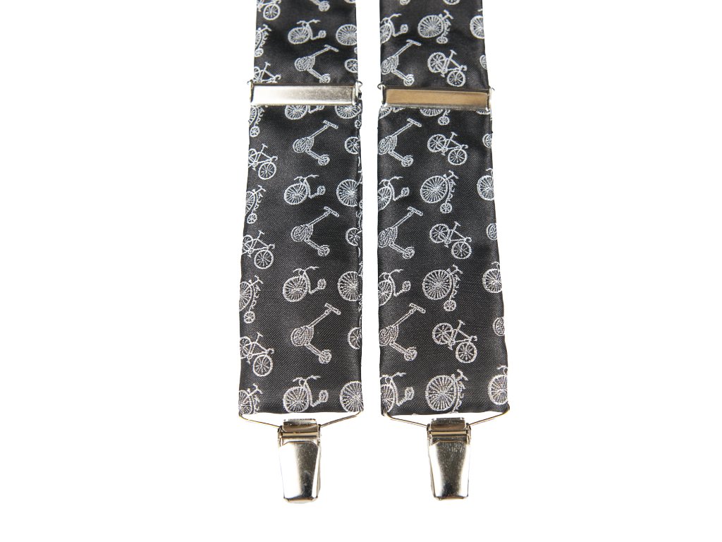 Pánské šité šle vyrobené z kvalitního polyesterového materiálu se sportovním motivem kolových prostředků. Šle mají tři přesky na připnutí a regulační posunovače. Zadní část šlí je spojená koženým středem s gumou.