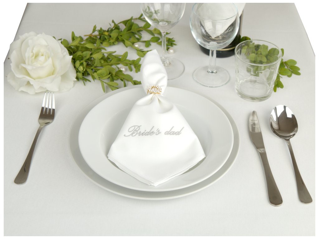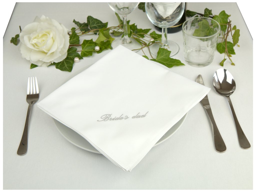 Svatební ubrousek 100%ba 46x46cm s výšivkou BRIDE'S DAD bílá