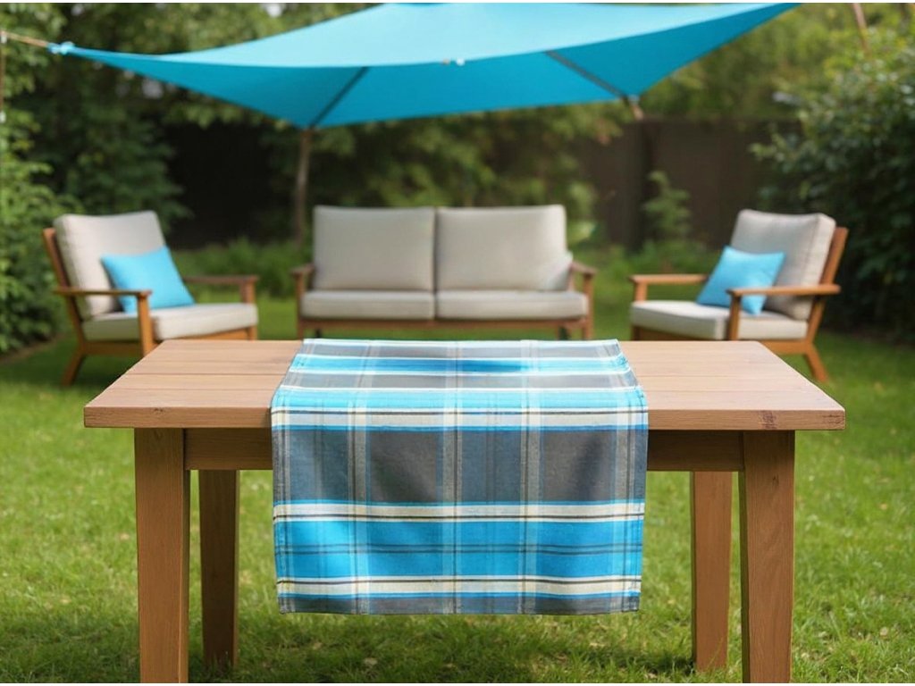 Ubrus 40x140 káro tyrkysová/hnědá
