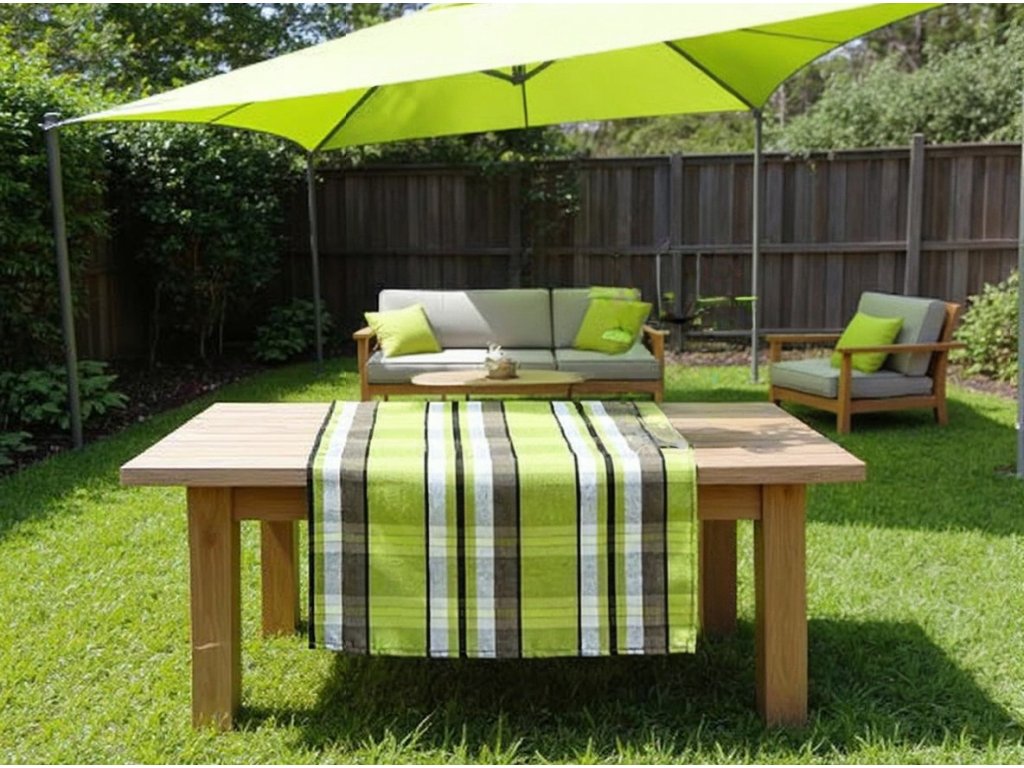 Ubrus, který se skvěle hodí k dalším zahradním doplňkům ve stejném vzoru a barevnosti.