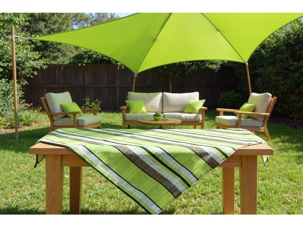 Ubrus, který se skvěle hodí k dalším zahradním doplňkům ve stejném vzoru a barevnosti.