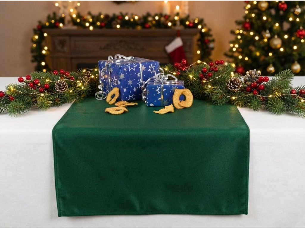 Smaragdová barva na ubrusu vytvoří krásný a přírodní efekt při dekoraci stolu při slavnostních příležitostech, jako jsou svatby, Vánoce, oslavy narozenin nebo formální večeře. Smaragdová barva dodá prostoru nádech přírody.