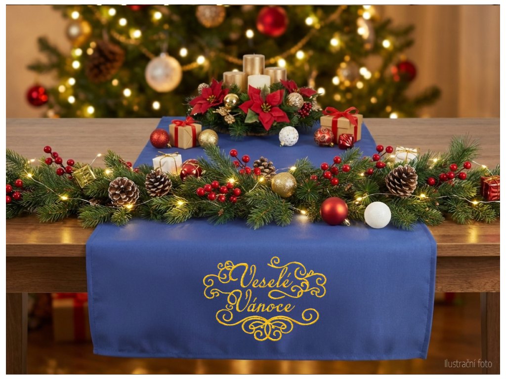 Dodejte svému svátečnímu stolu pravou vánoční atmosféru. Na naše kvalitní ubrusy vám rádi vyšijeme elegantní nápis "Veselé Vánoce", který krásně doplní tradiční českou výzdobu i rodinnou pohodu.