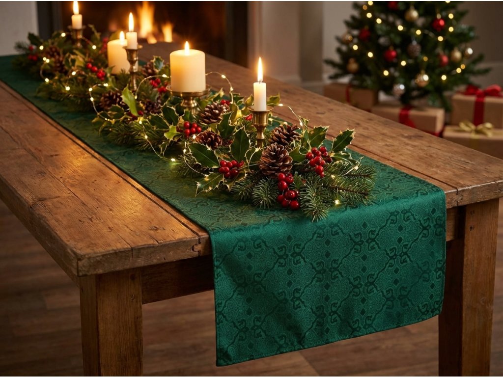 Smaragdová barva na ubrusu vytvoří krásný a přírodní efekt při dekoraci stolu při slavnostních příležitostech, jako jsou svatby, Vánoce, oslavy narozenin nebo formální večeře. Smaragdová barva dodá prostoru nádech přírody.