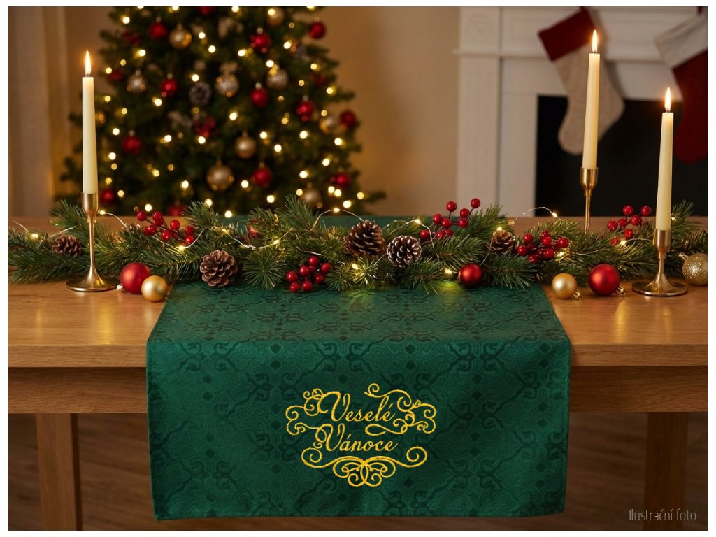 Dodejte svému svátečnímu stolu pravou vánoční atmosféru. Na naše kvalitní ubrusy vám rádi vyšijeme elegantní nápis "Veselé Vánoce", který krásně doplní tradiční českou výzdobu i rodinnou pohodu.