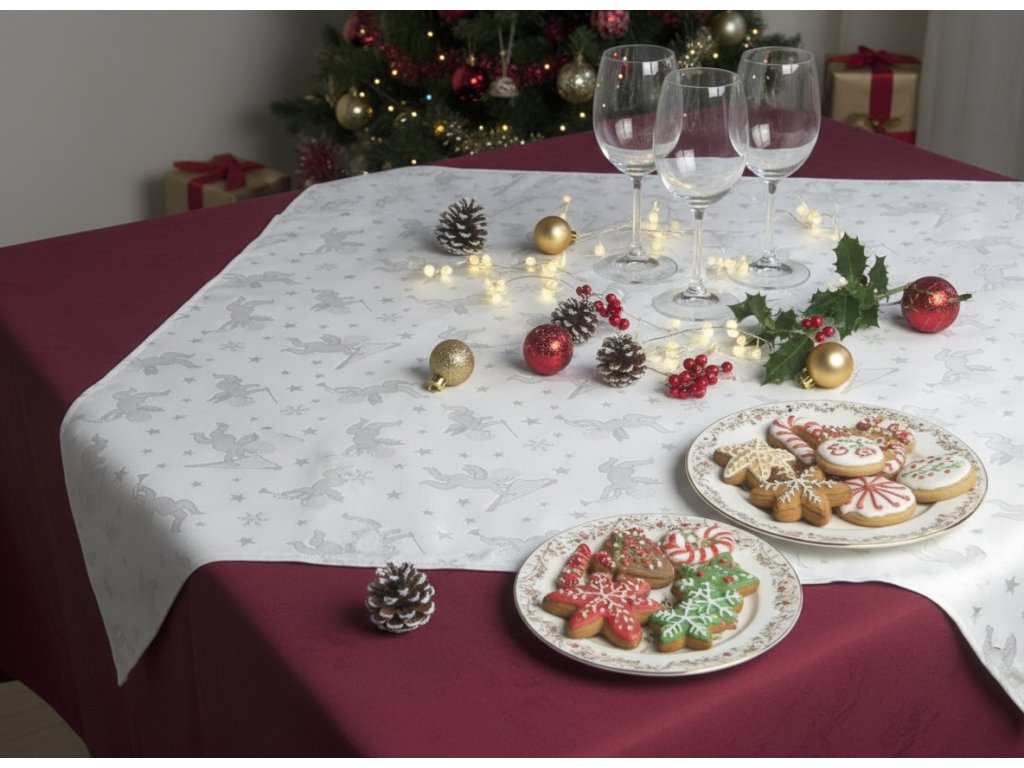 Dodejte svému svátečnímu stolu pravou vánoční atmosféru. Na naše kvalitní ubrusy vám rádi vyšijeme elegantní nápis "Veselé Vánoce", který krásně doplní tradiční českou výzdobu i rodinnou pohodu.
