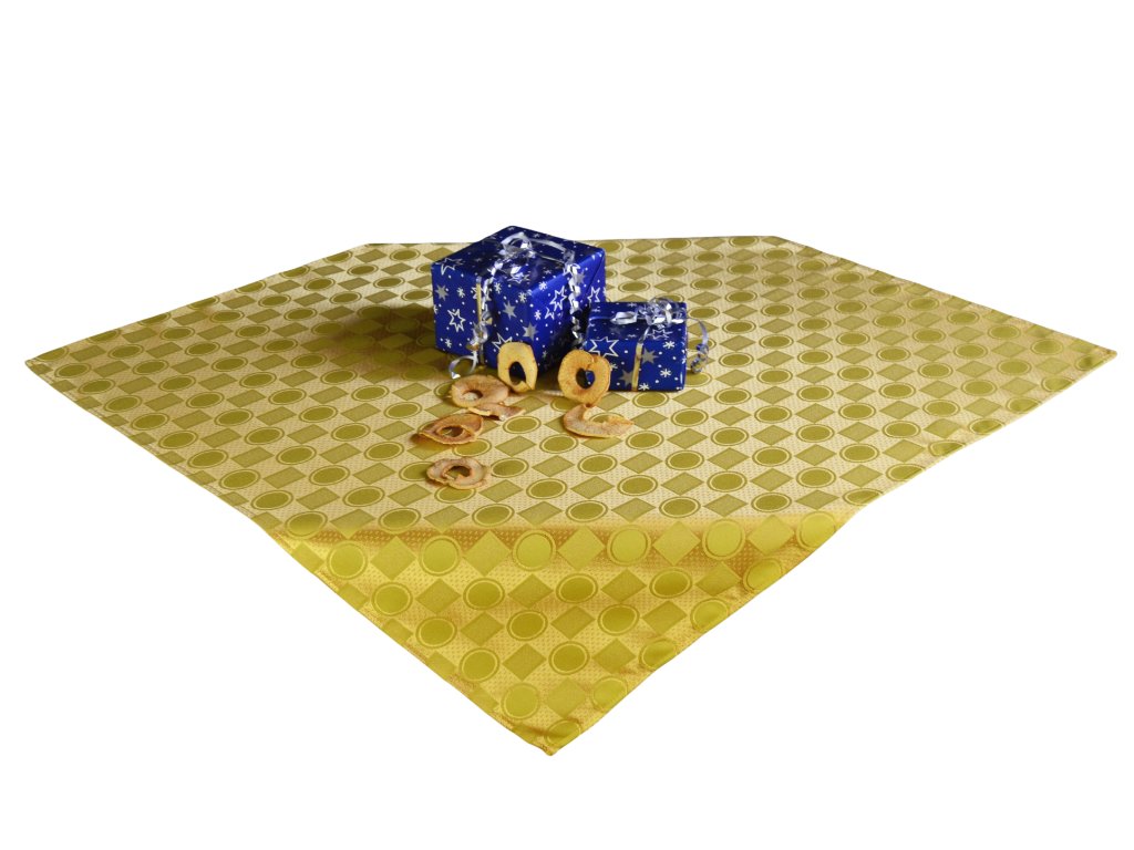Luxusní zlatý ubrus Odaska s elegantním vzorem ŽÍHÁNÍ A OVÁL. Díky nešpinavé voděodolné úpravě "Teflon" je ubrus vhodný pro každodenní použití. Rozlitou vodu či kávu stačí jen odsát ubrouskem.