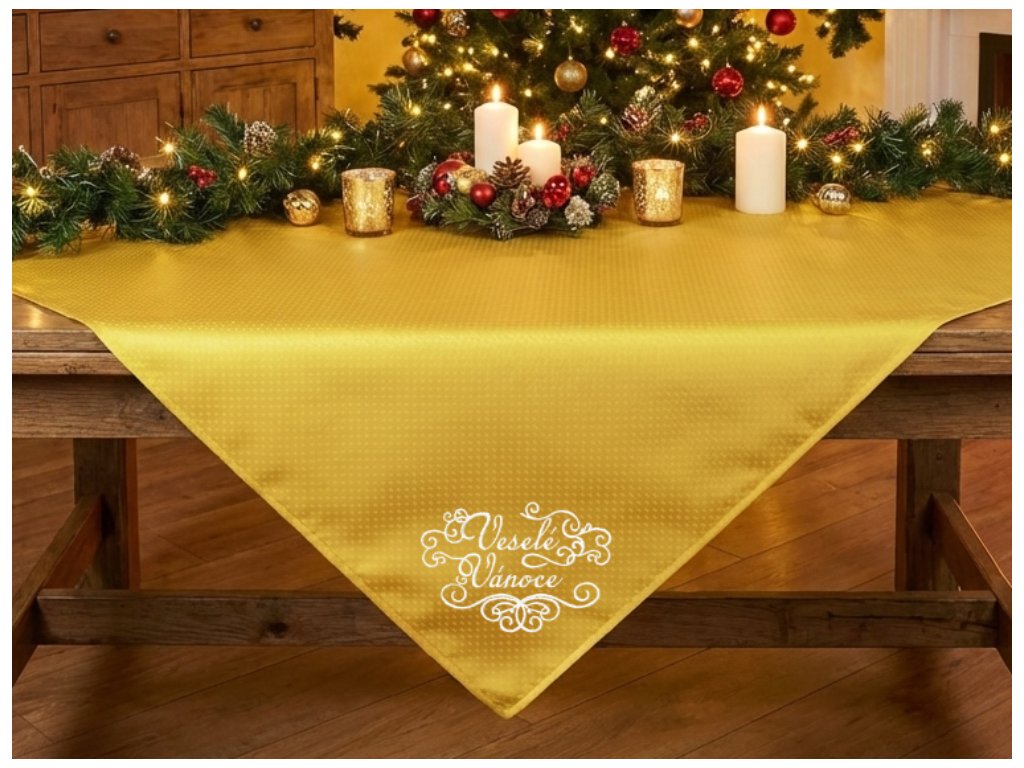 Dodejte svému svátečnímu stolu pravou vánoční atmosféru. Na naše kvalitní ubrusy vám rádi vyšijeme elegantní nápis "Veselé Vánoce", který krásně doplní tradiční českou výzdobu i rodinnou pohodu.